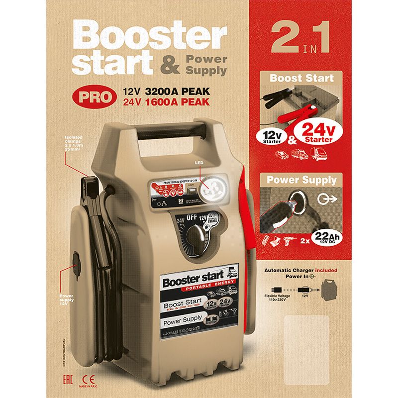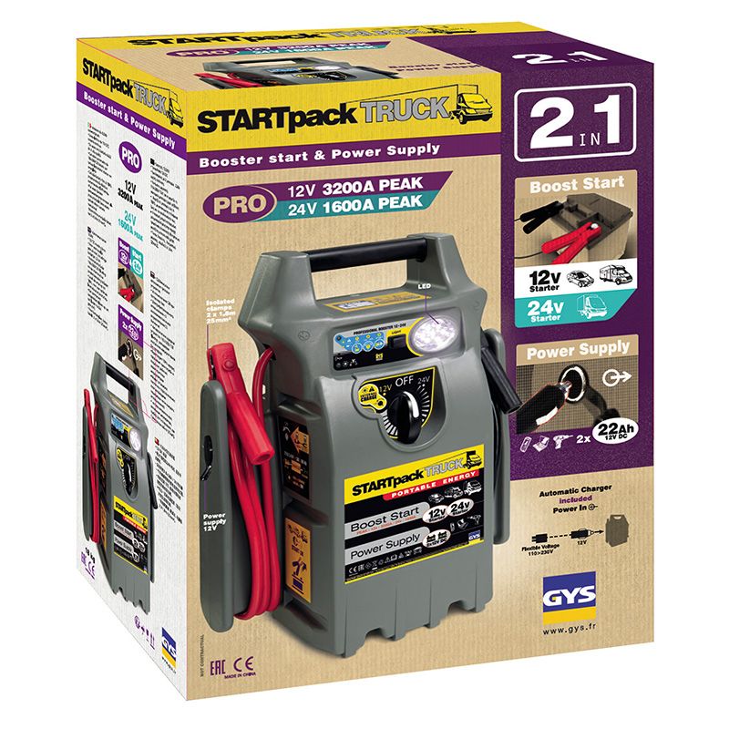 STARTPACK PRO 12-24 нь 12 В болон 24 В-ын хар тугалган аккумлятор бүхий автомашин, кемпер, ачааны машин болон хүнд даацын бензин, дизель хөдөлгүүртэй тээврийн хэрэгслийг агшин зуур асаах зориулалттай мэргэжлийн түвшний төхөөрөмж юм. Мөн уг төхөөрөмж нь 22 Ah багтаамжтай суурилуулсан батерейгаар ажилладаг тул 12 В-ын цахилгаан төхөөрөмжүүдийг (зурагт, гэрэл, зөөврийн компьютер гэх мэт) тэжээх бие даасан цахилгаан эх үүсвэр болж ашиглагдана.