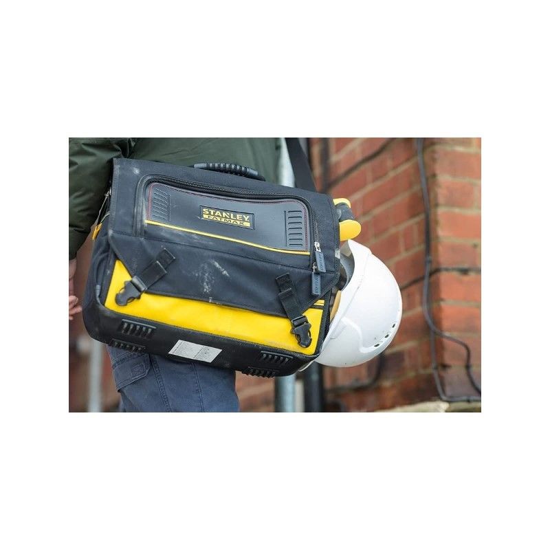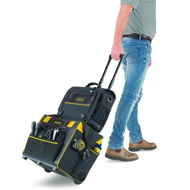 15,6 компьютер, таблет, А4 хэмжээтэй баримт бичигт зориулсан дэвсгэртэй халаас. Багажны уян харимхай эзэмшигчтэй олон зориулалттай халаас. Тохируулах болон зөөврийн оосортой. Эргономик бариул. Дугуйтай Fatmax чемоданд холбох зориулалттай арын уян харимхай. Суурь дээр 4 хуванцар хөл нь агуулгыг ус, элэгдэлд оруулахаас хамгаална.